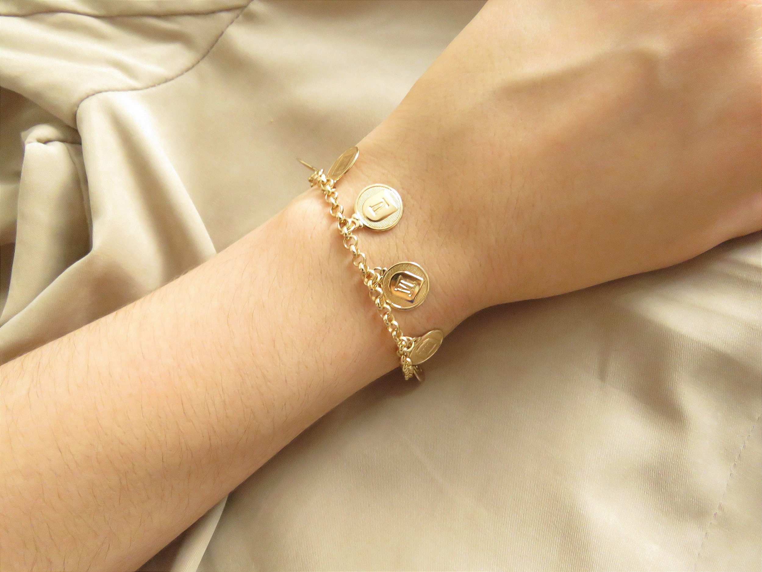 Pulseira 10 mandamentos pendurados. Banhado a ouro 18k.