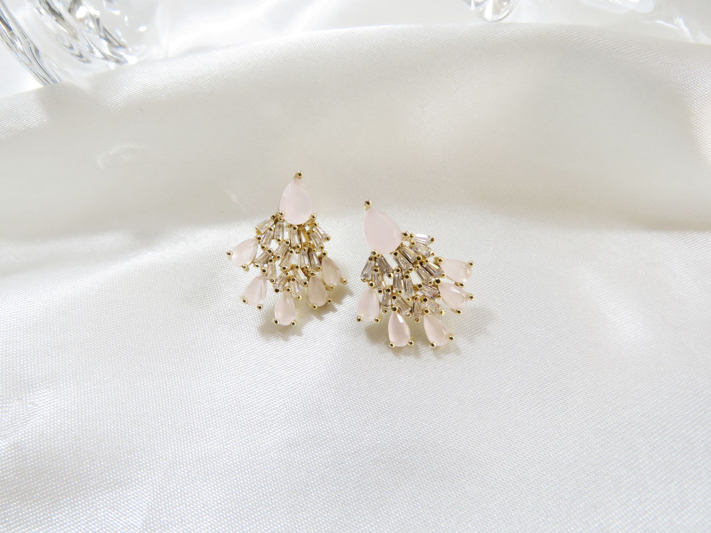 Brinco tipo gota todo em pedraria, com zircônias baguete. Fechamento de pino e tarracha. Banhado a ouro 18k.