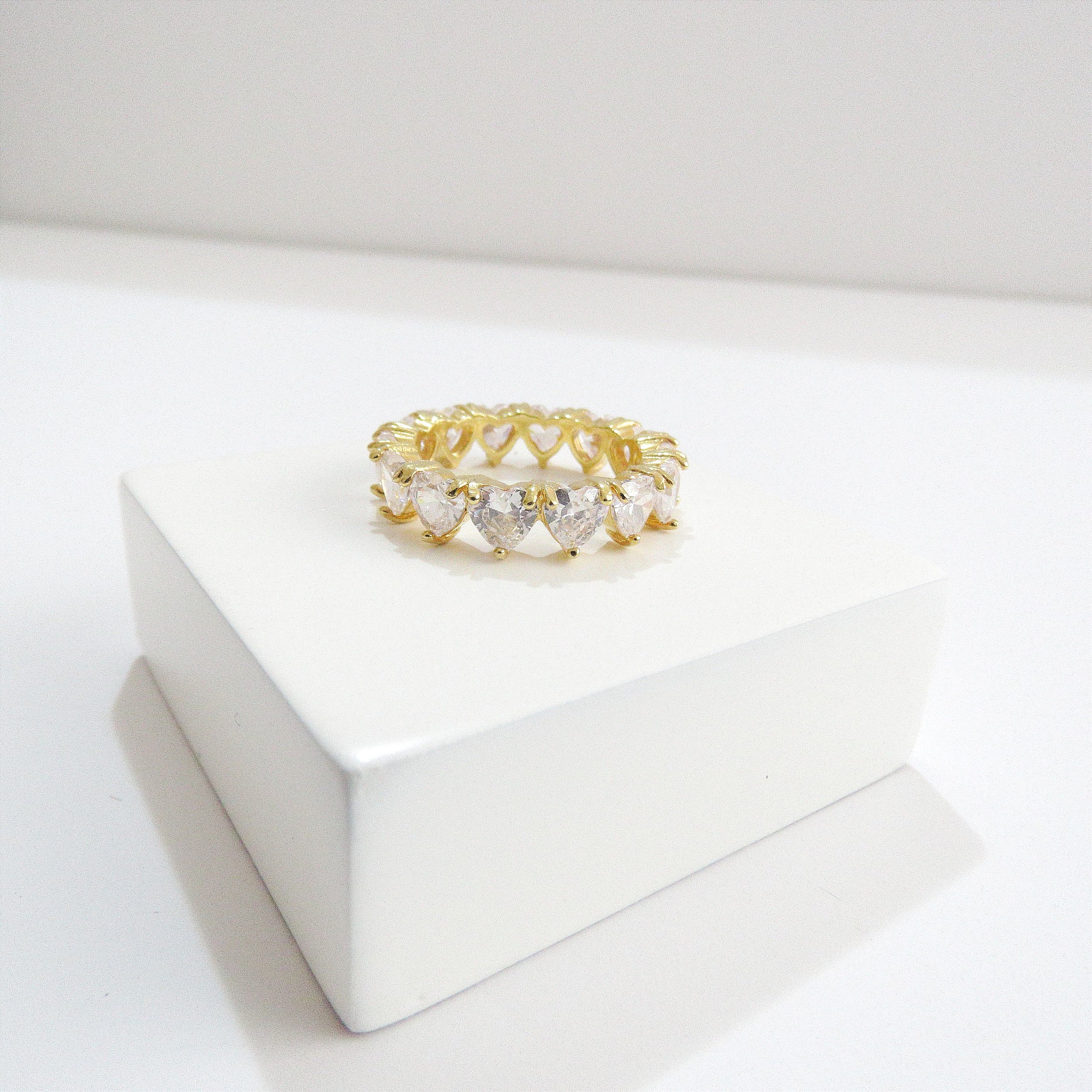 Anel aparador todo na pedra em formato de coração, banhado a ouro 18k.