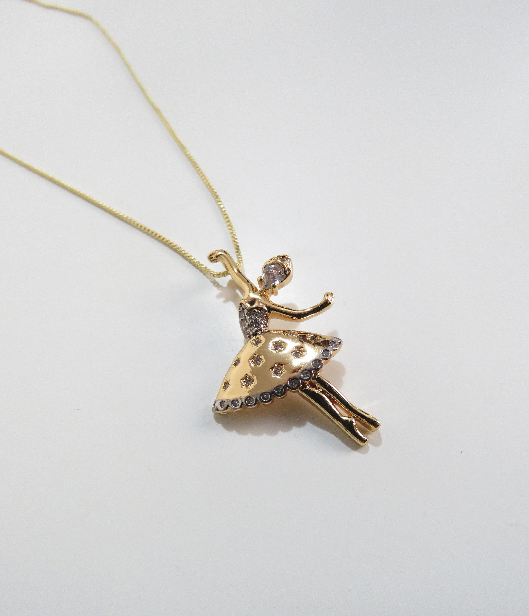 Colar bailarina com detalhes na zircônia. Banhada a ouro 18k.