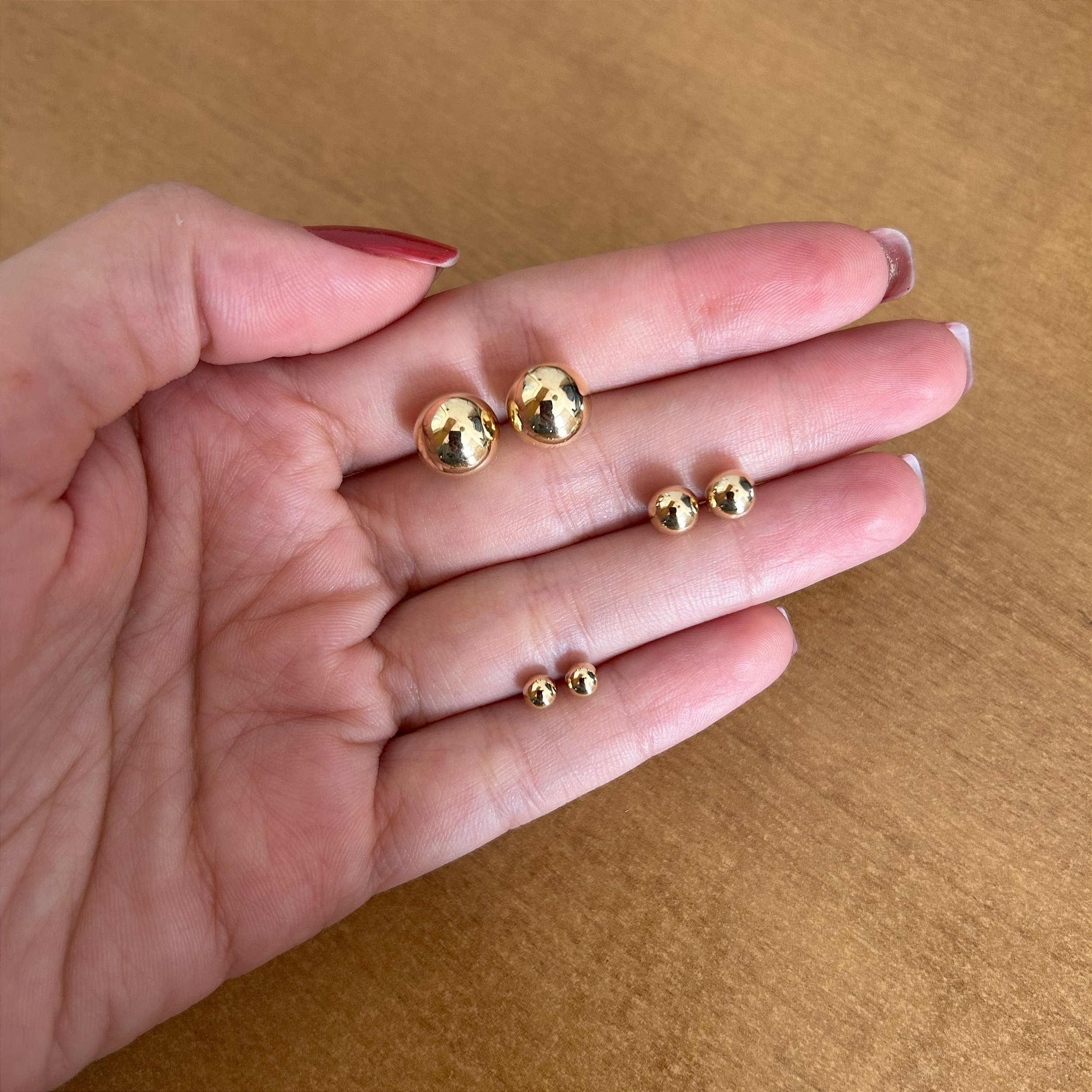 Brinco bola. Fechamento tarracha. Banhado a ouro 18k.