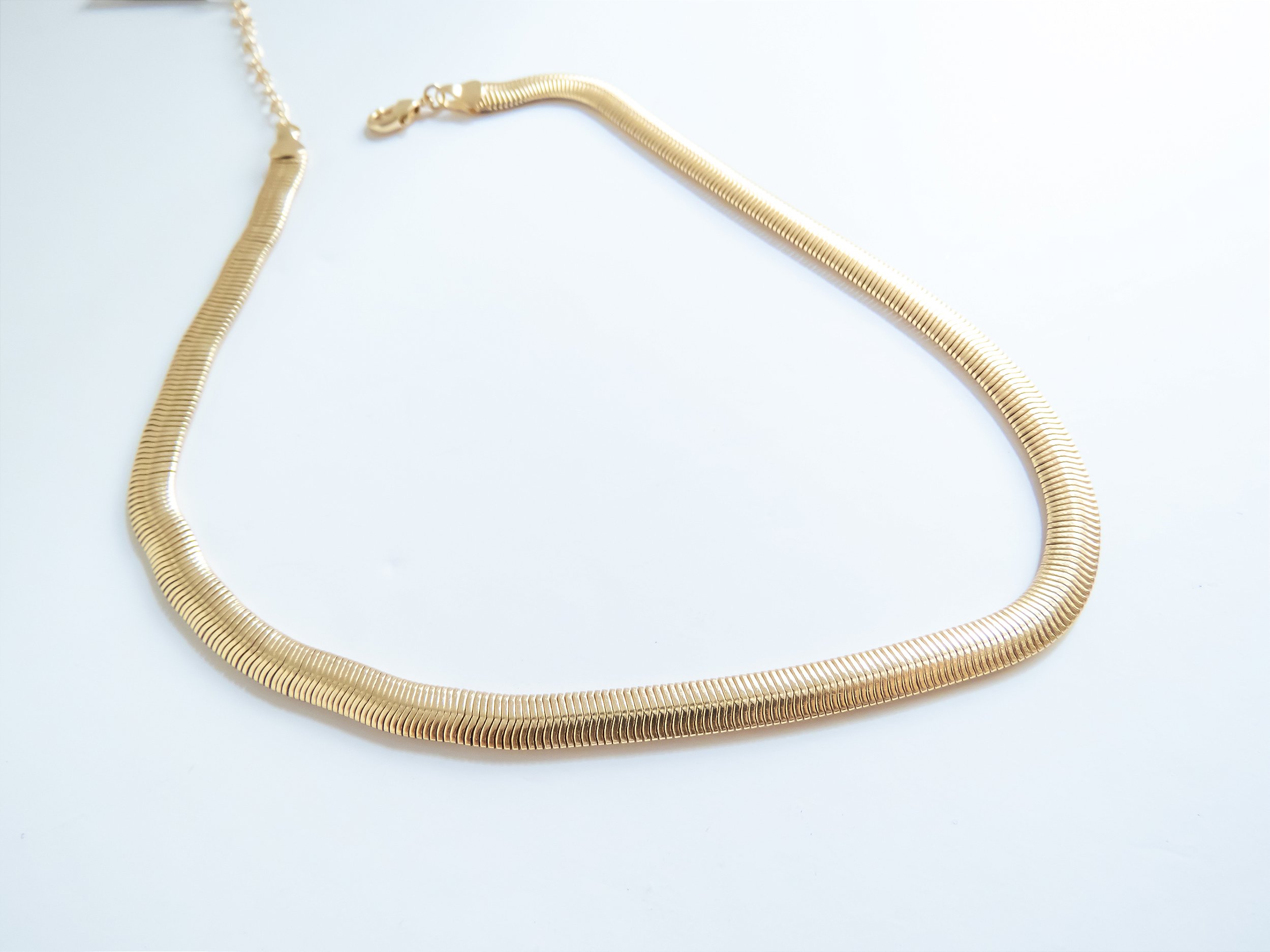 Choker corrente malha maleável com extensor. Banhado a ouro 18k.