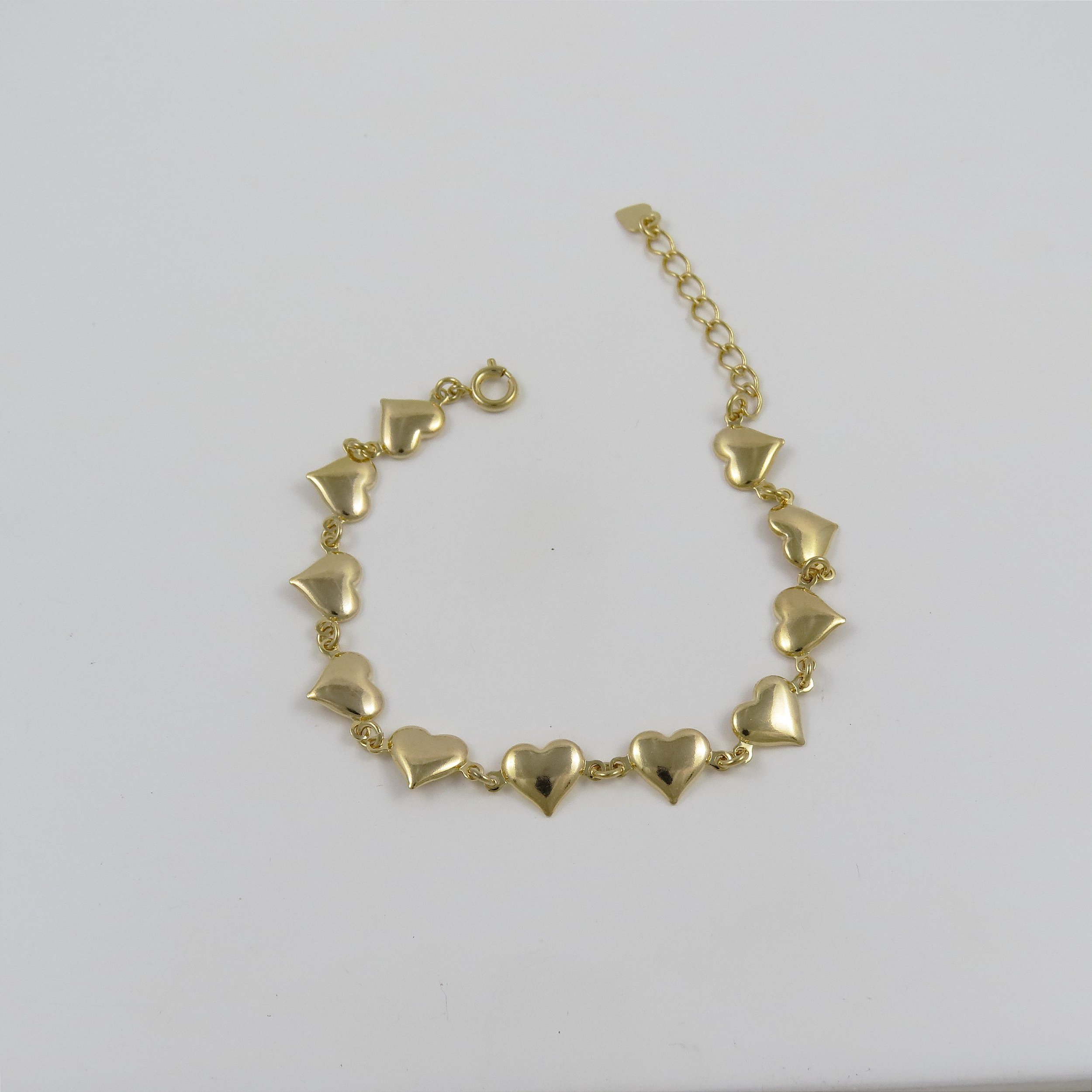 Pulseira corações estilo chapa. Banhado a ouro 18k. Hipoalergênico. Com 6 meses de garantia no banho.