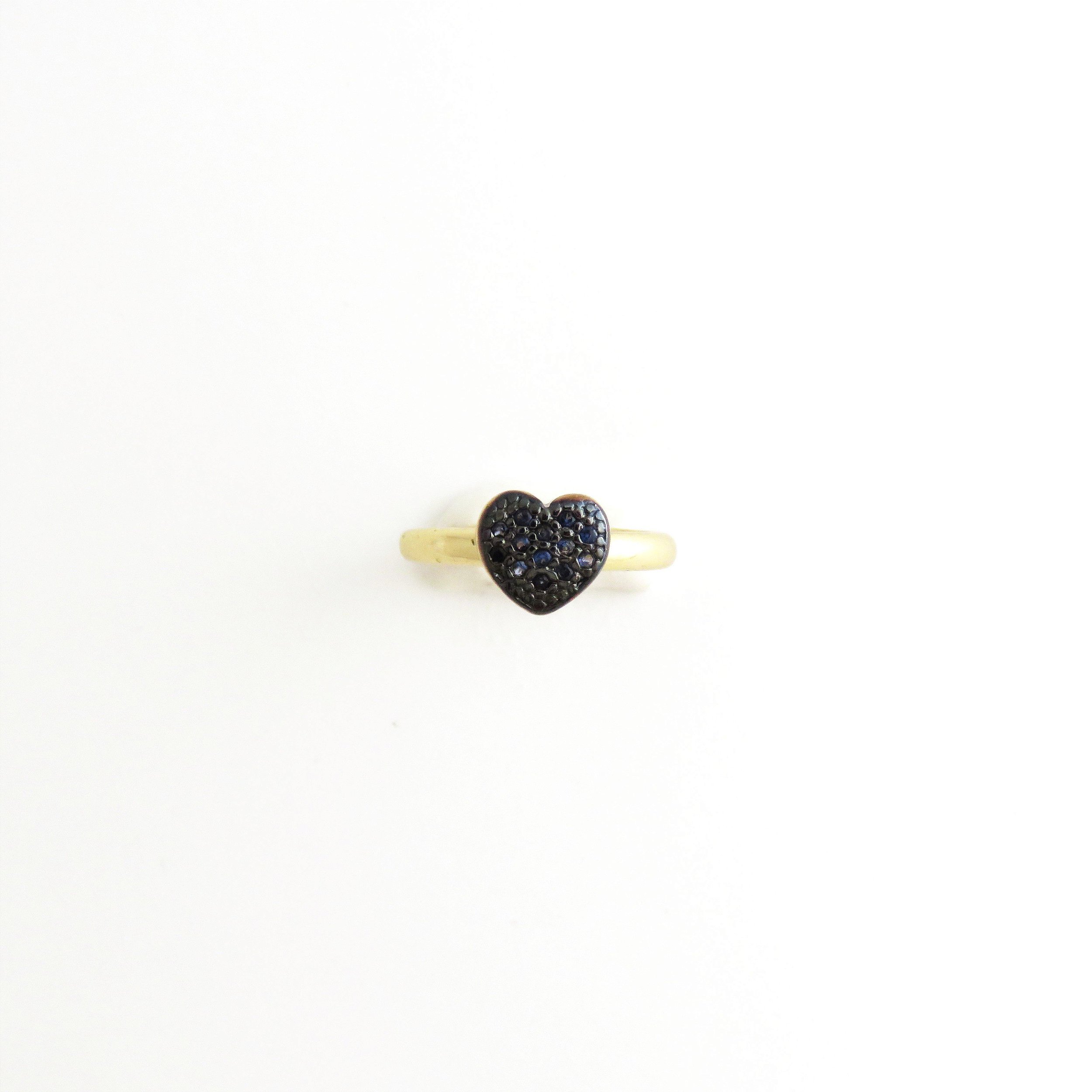 Anel chuveiro coração cravejado na zircônia azul e ródio negro. Banhado a ouro 18k.