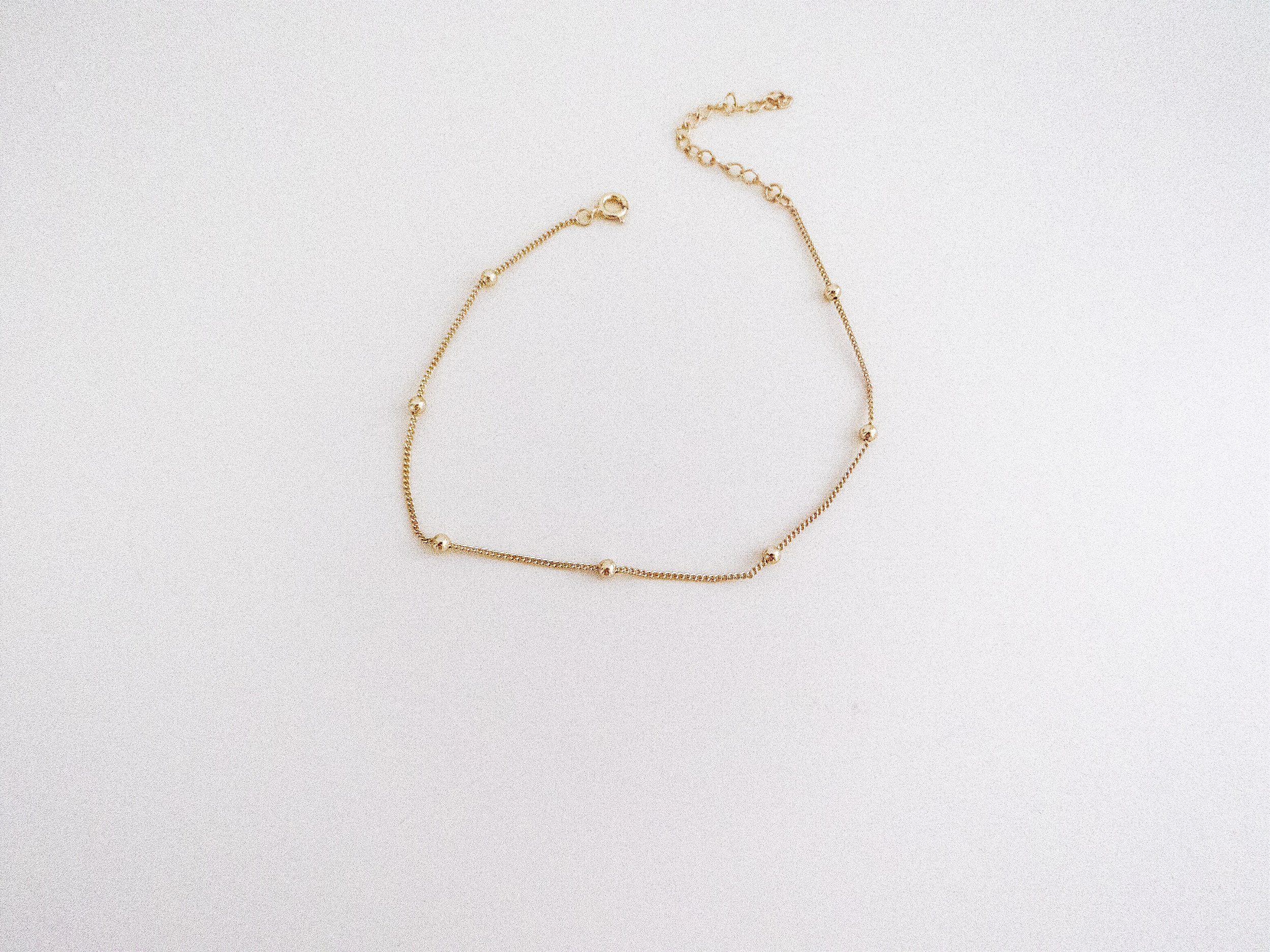 Tornozeleira corrente com bolinhas. Banhado a ouro 18k.
