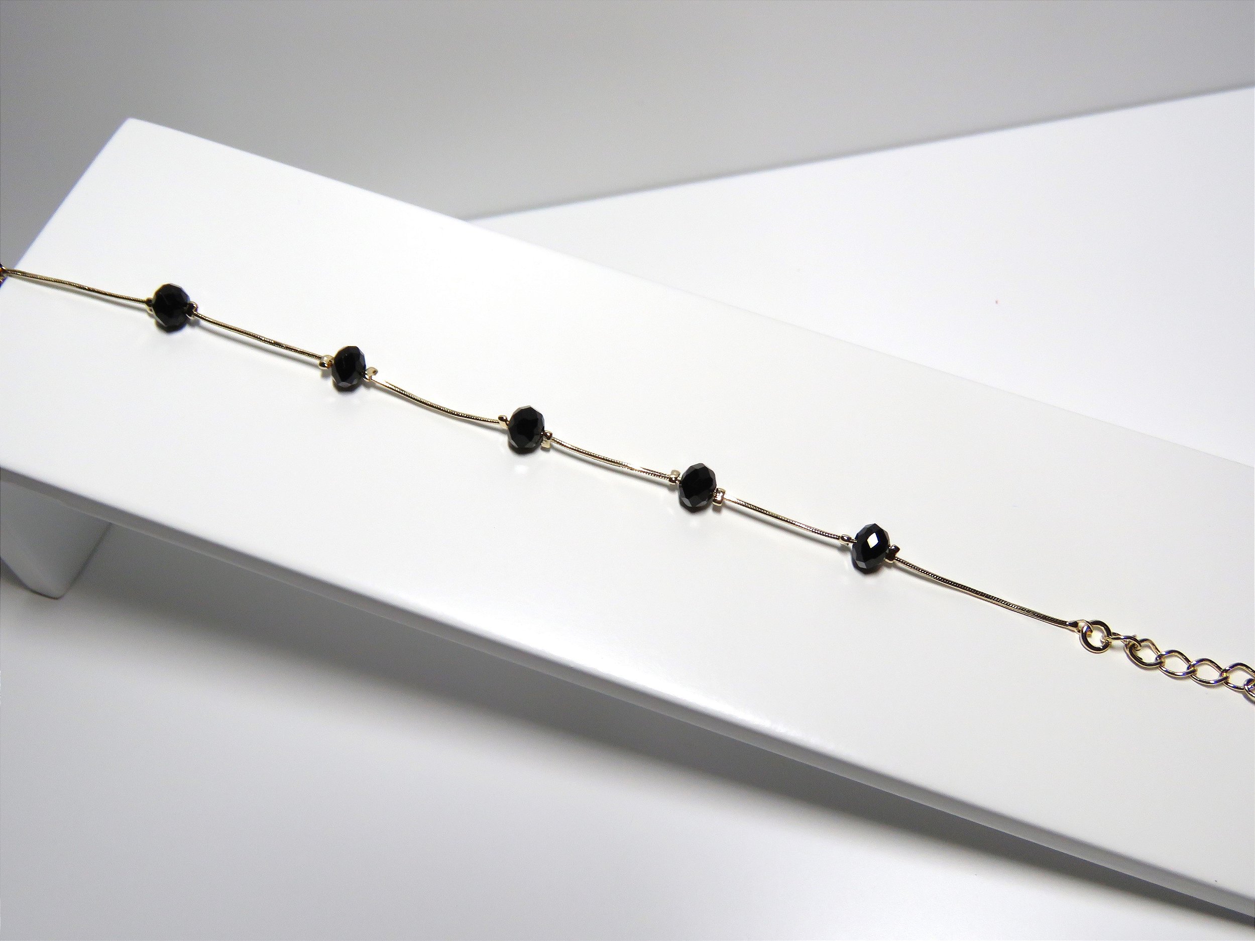 Pulseira 5 cristais negros. Banhado a ouro 18k.