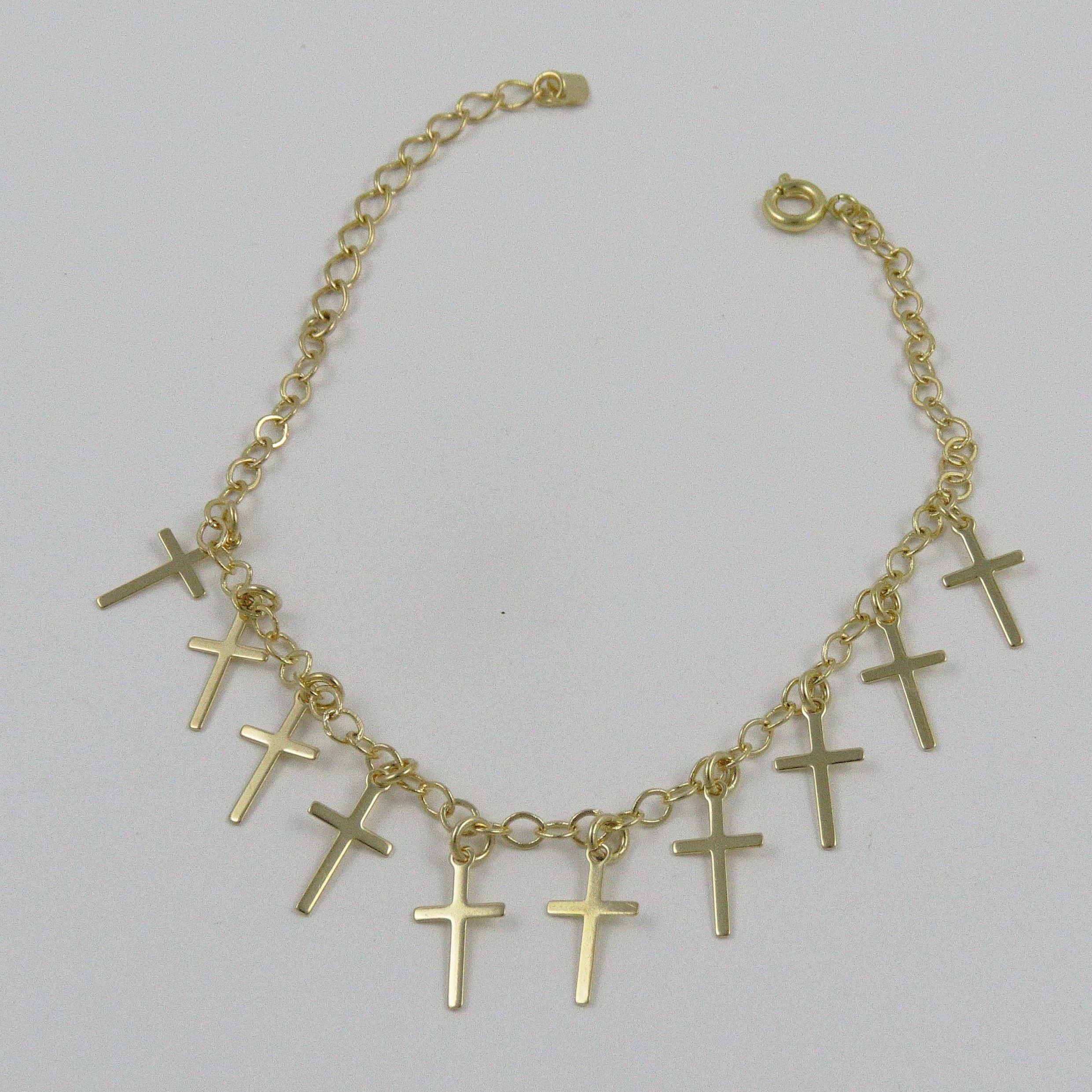 Pulseira corrente elos com pingentes de cruz pendurados . Banhado a ouro 18k.