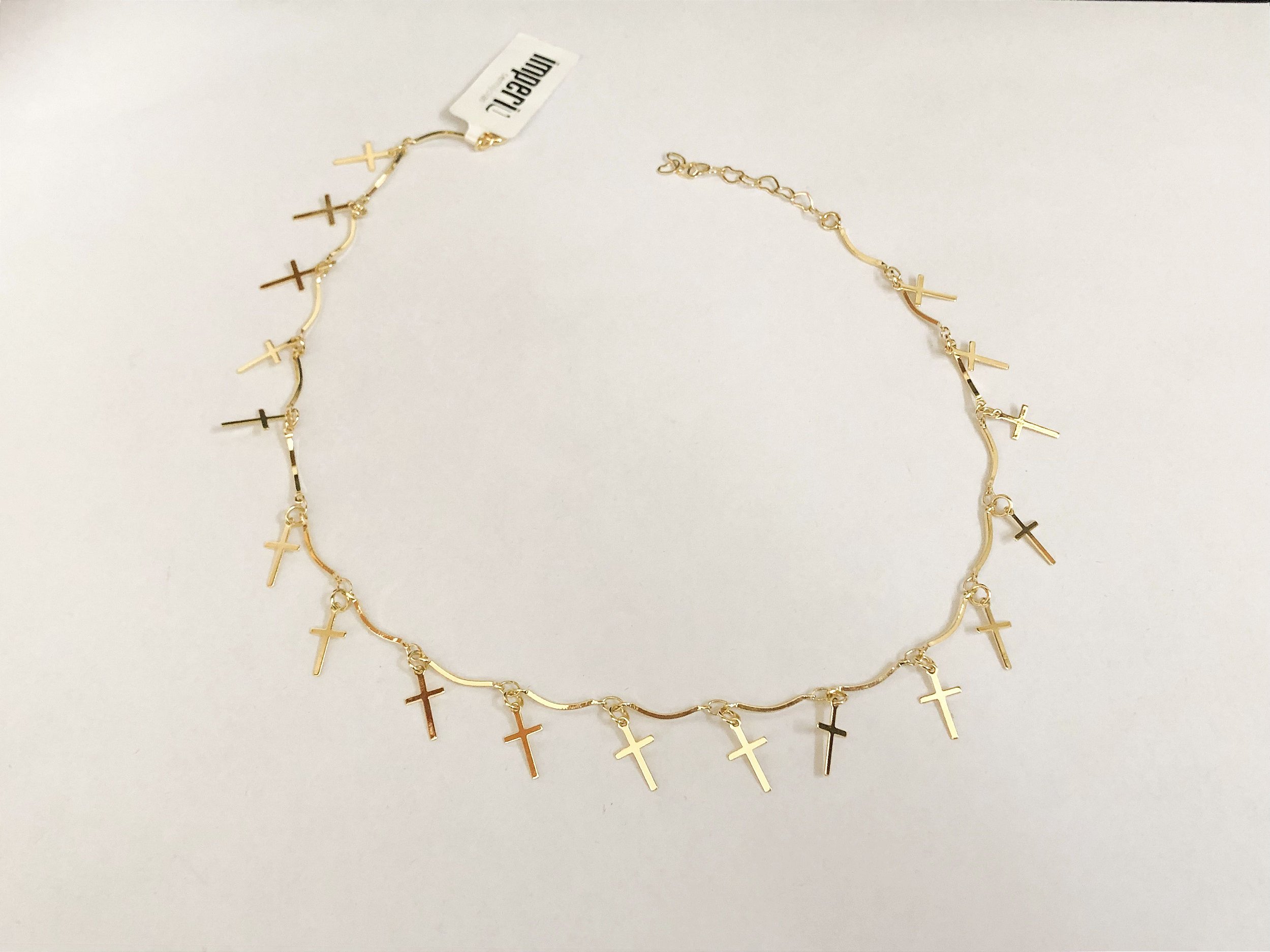 Choker com pingentes de cruz pendurado. Banhada a ouro 18k.