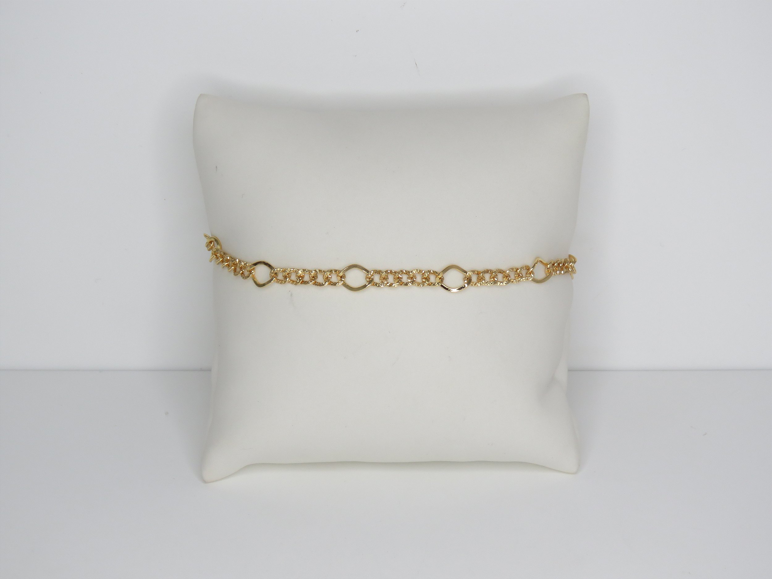 Tornozeleira corrente elos craquelados e lisos. Banhado a ouro 18k.