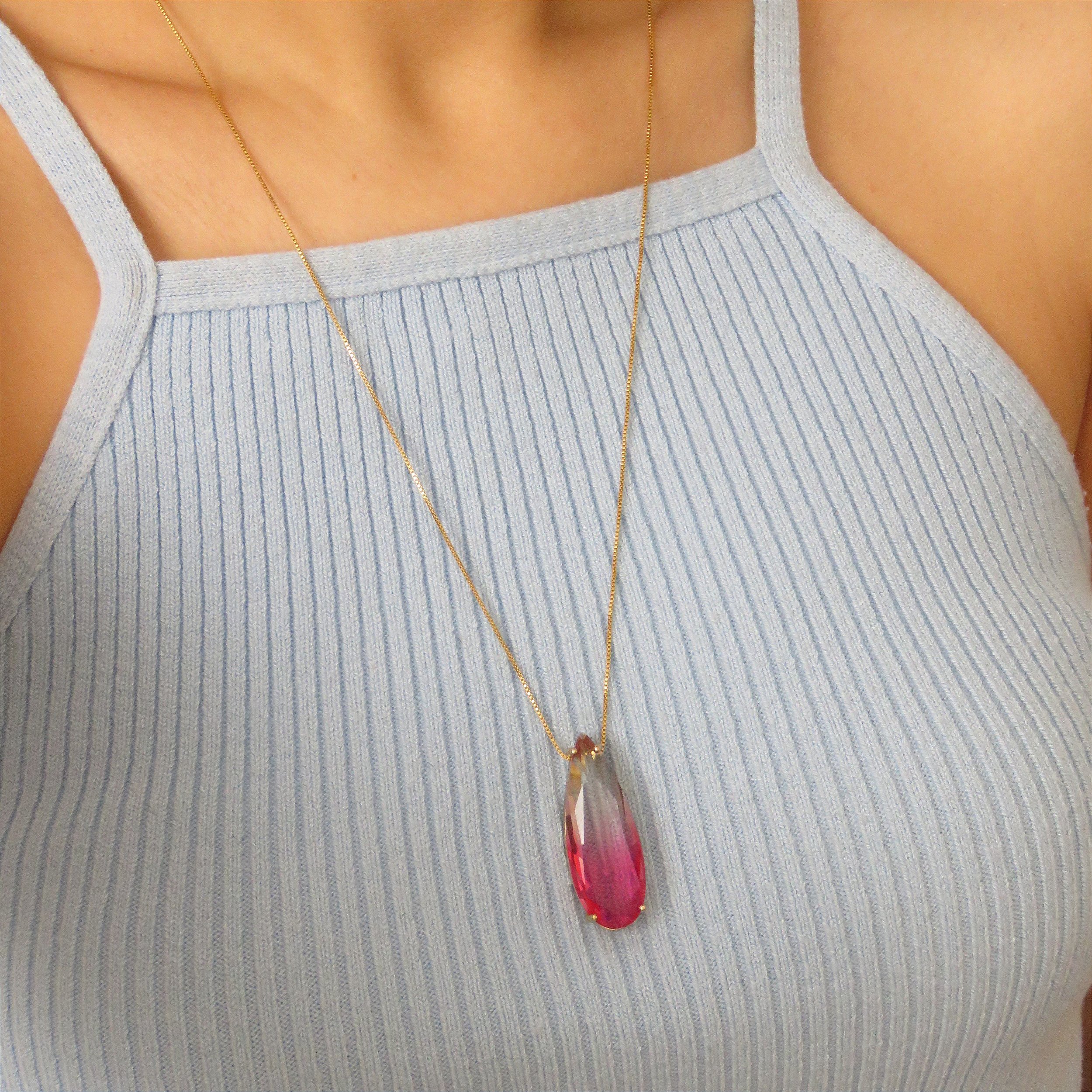 Colar longo pedra formato de gota. Na corrente veneziana. Banhado a ouro 18k.