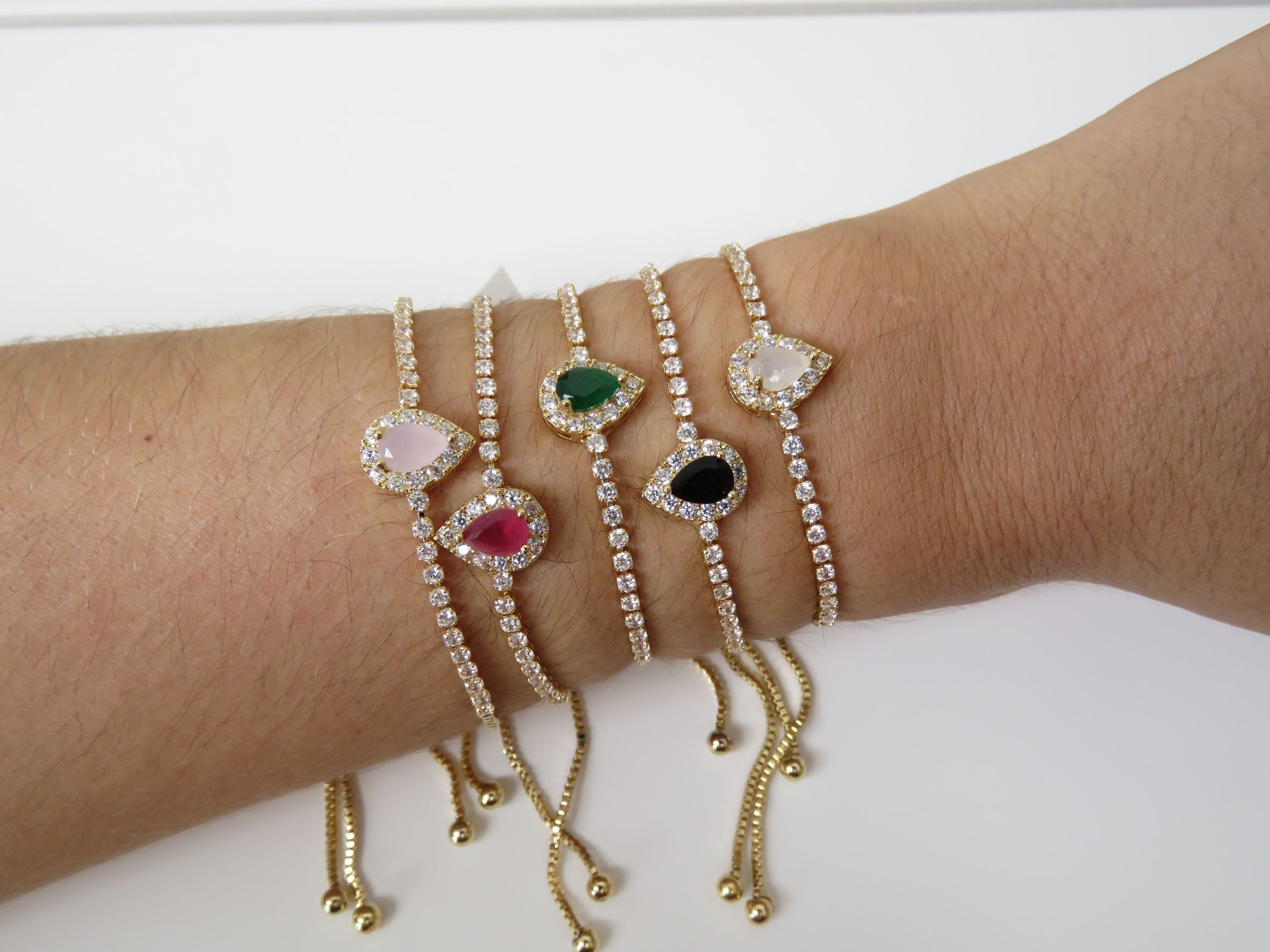 Pulseira gota em pedra cravejada em volta. Banhado a ouro 18k.