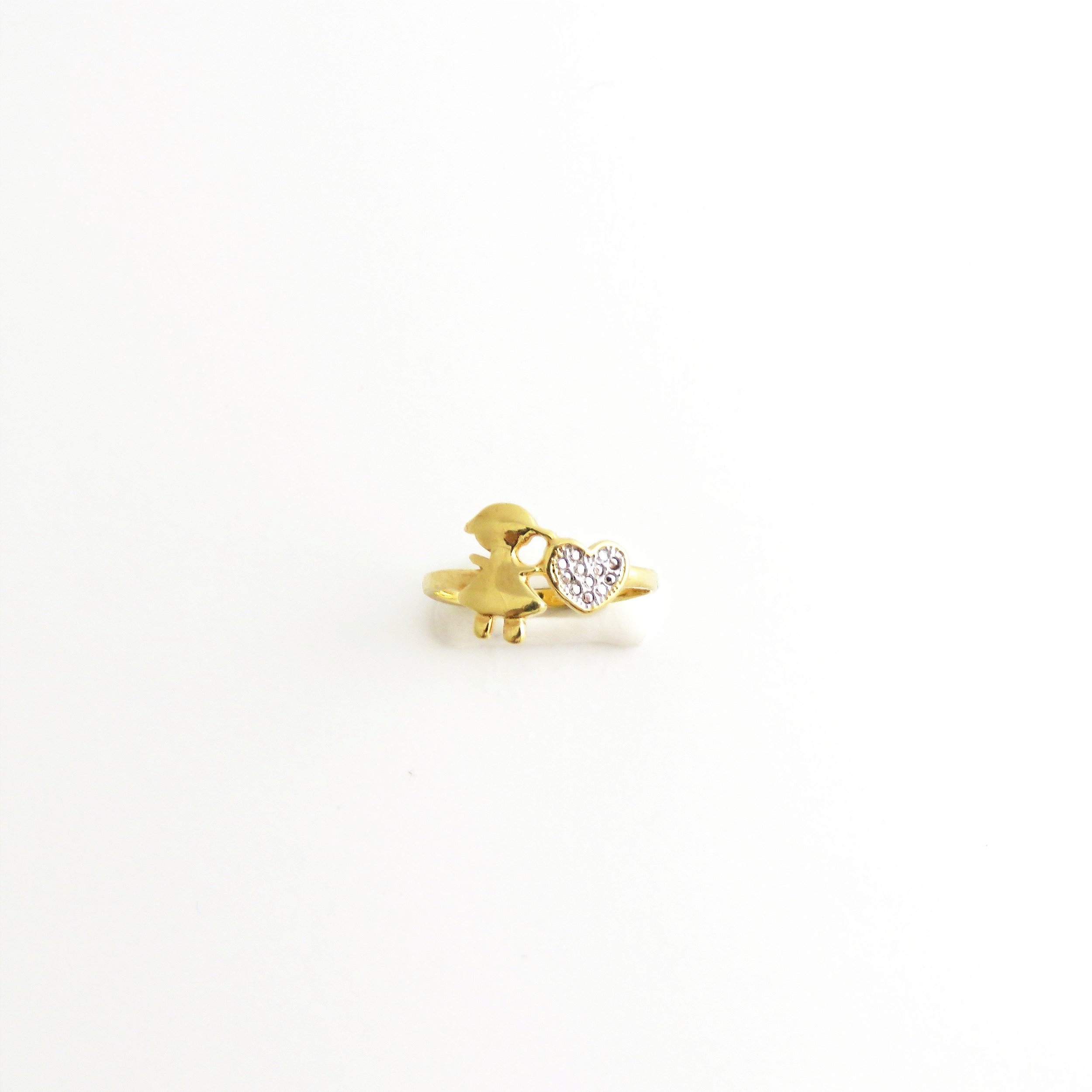 Anel menina + coração no ródio branco, banhado a ouro 18k.