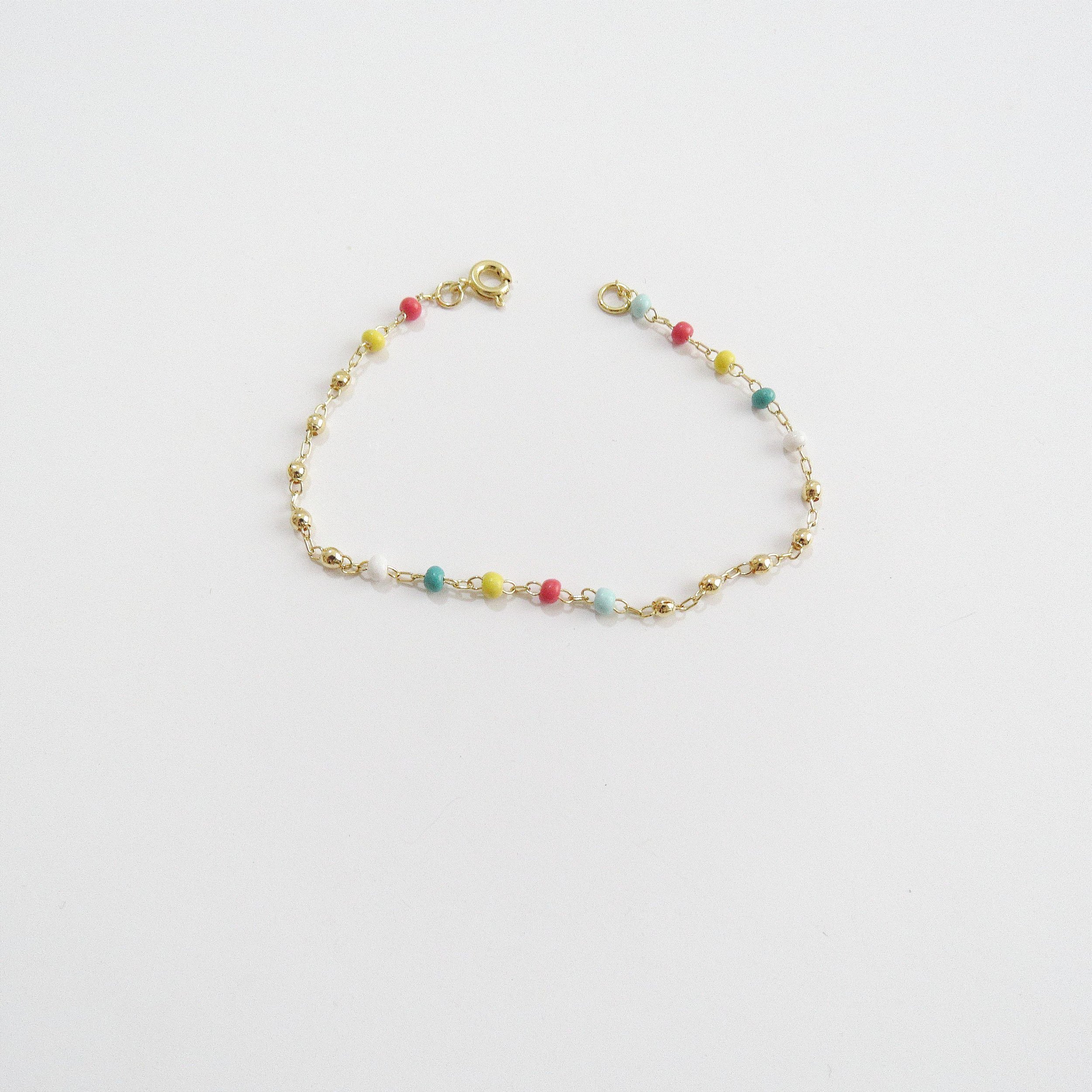 Pulseira miçangas e bolinhas de metal. Banhada a ouro 18k.