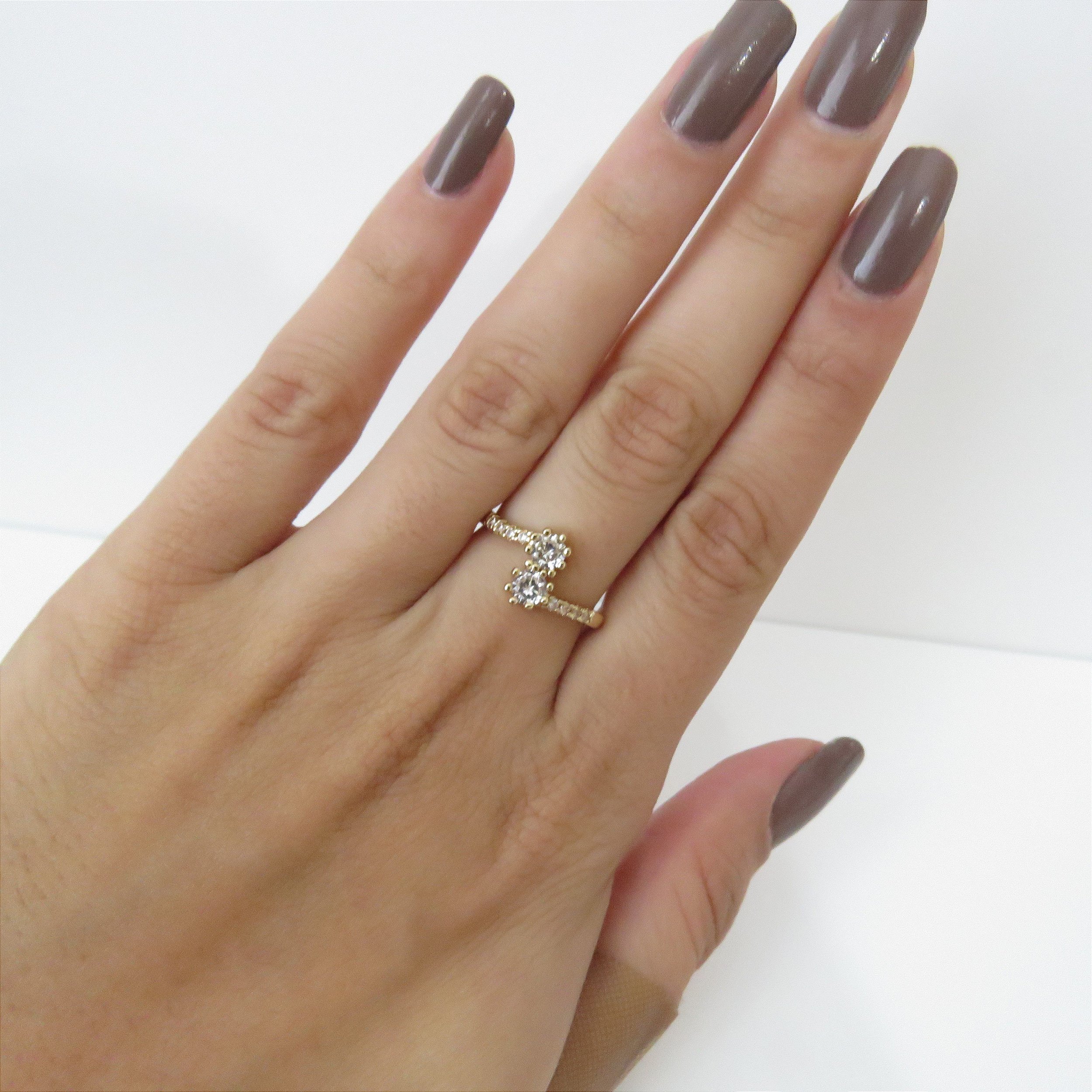 Anel ponto de luz duplo com laterais cravejadas. Banhado a ouro 18k.