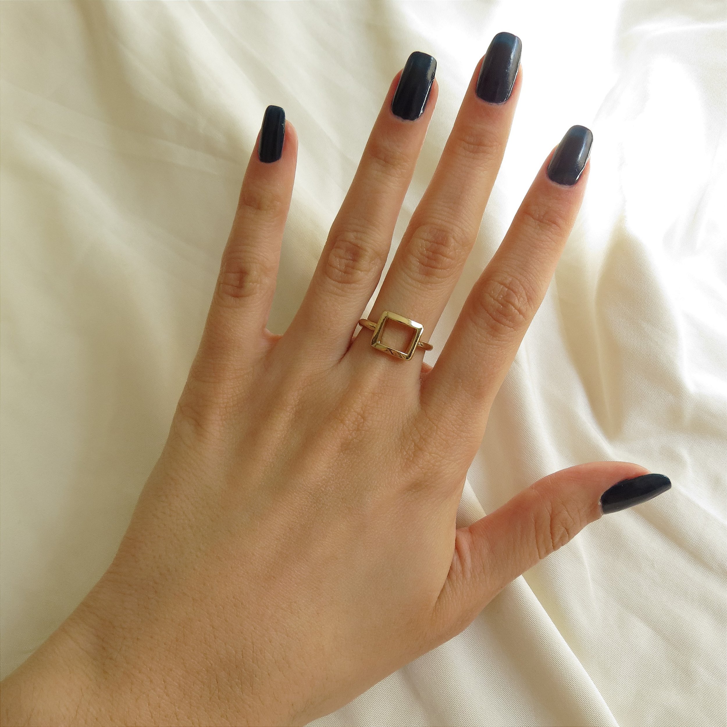Anel metal quadrado aberto. Banhado a ouro 18k.