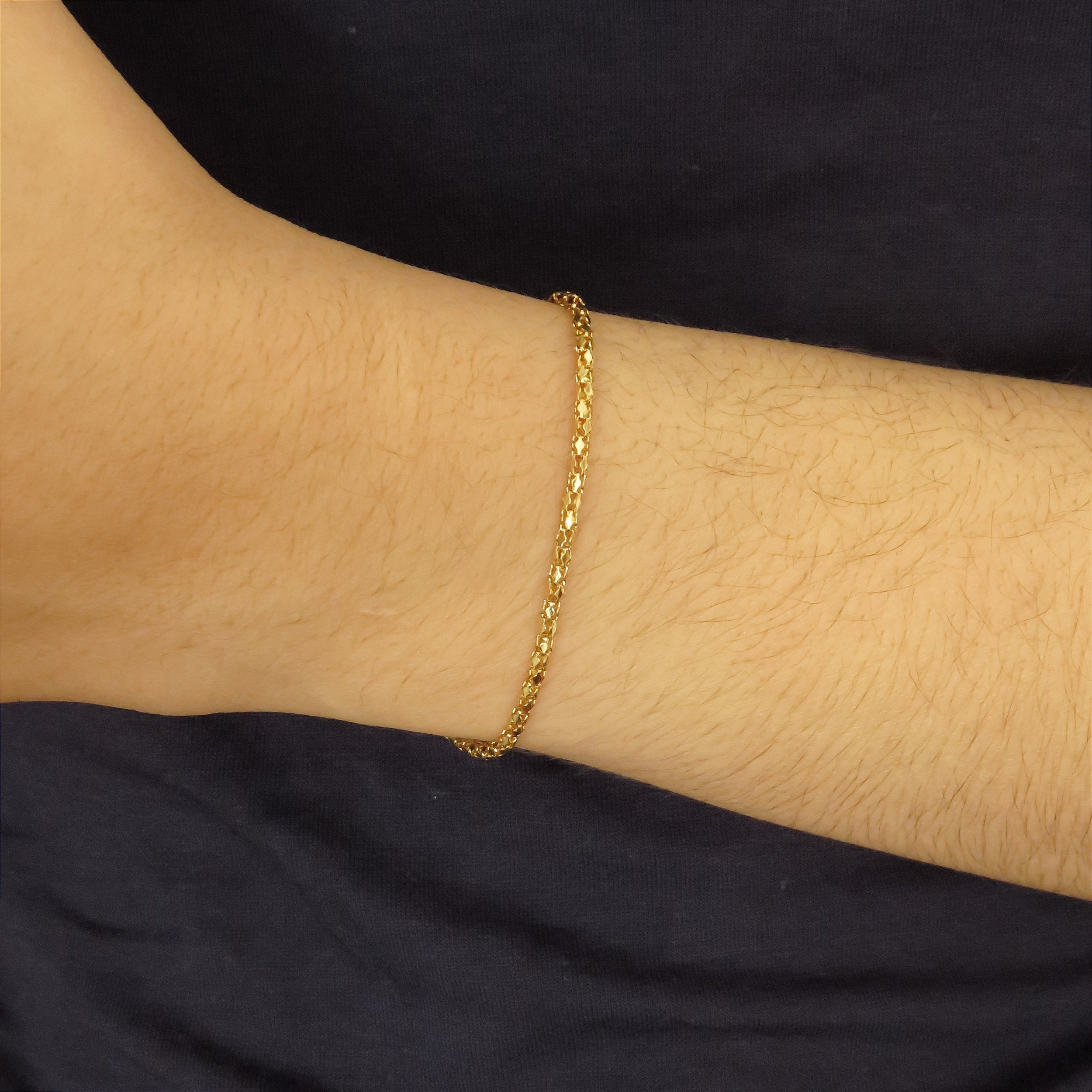 Pulseira estilo rede laminada. Banhado a ouro 18k.