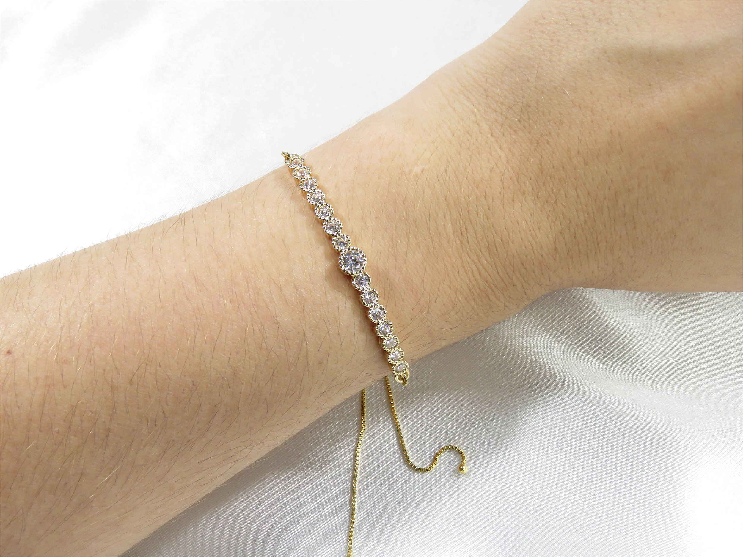 Pulseira riviera rígida com zircônia cravejada . Banhado a ouro 18k.