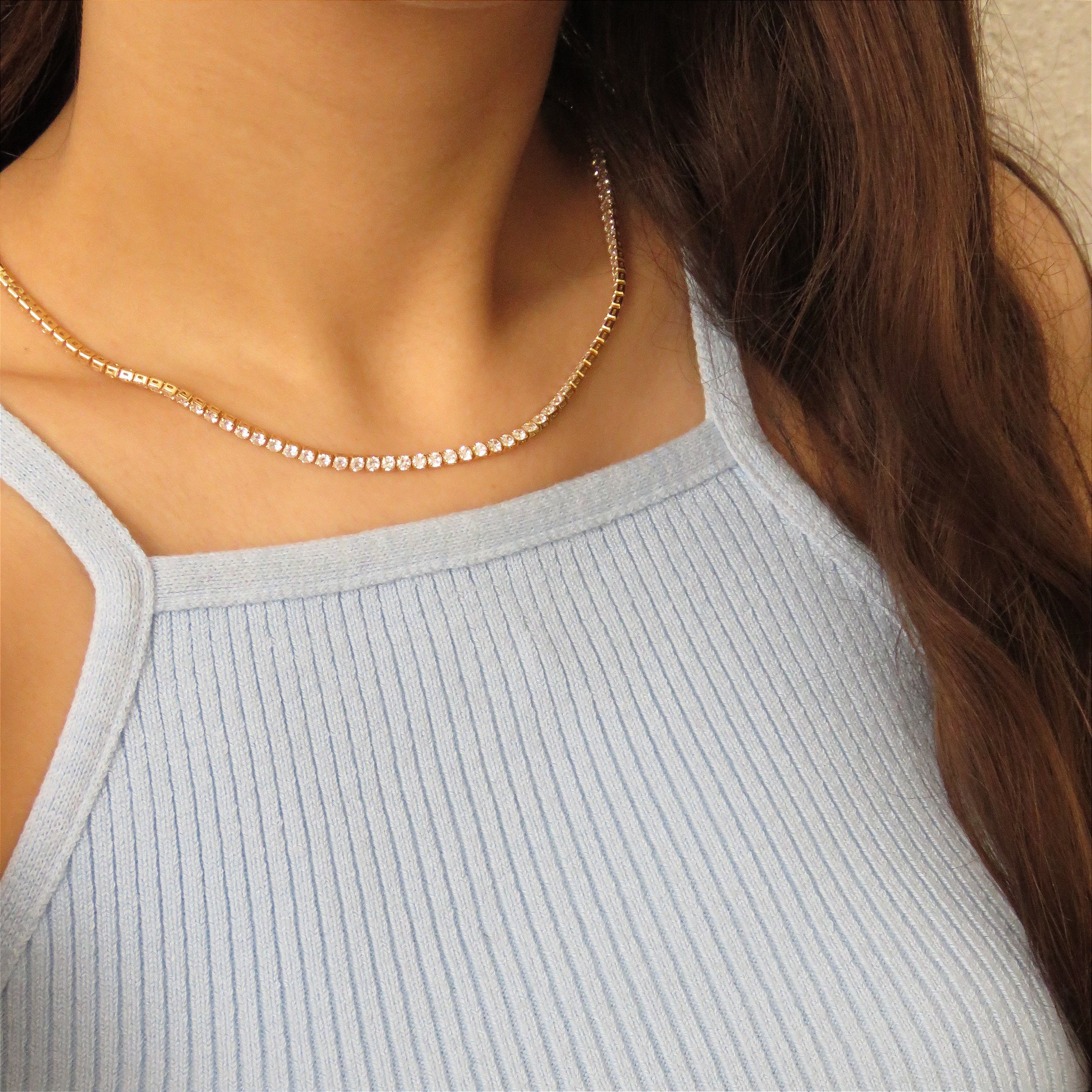 Colar na riviera zircônia cristal 3mm. Banhado a ouro 18k.