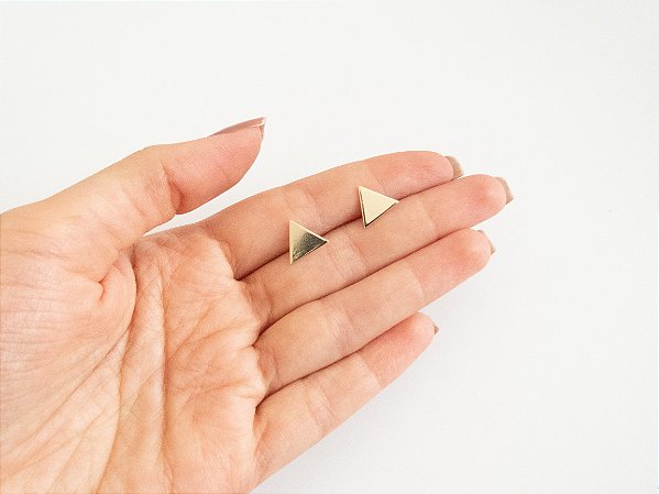 Brinco em formato de triângulo. Fechamento em tarracha. Banhado a ouro 18k.